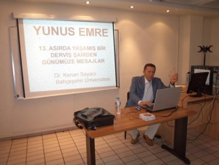 Yunus Emre ve Hz. Mevlana’da günümüz dünyasını zenginleştirecek çok fazla mesaj bulunduğuna dikkat çeken Bahçeşehir Üniversitesi öğretim görevlisi Dr. Kenan Sayacı, şöyle konuştu: “Biz, büyük bir hazinenin üzerinde oturuyoruz. Ama farkında değiliz. Sadece Mevlana ve Yunus Emre’yi tanısak ve insanlarımız ile bütün dünyaya onları tam manası ile tanıtabilsek mesele halledilir diye düşünüyorum. Örneğin “Sen sana ne sanursan, ayruğa da onu san” deyişi sadece sekiz kelime. Ama bir kitap değerinde. Yunus’u önce biz anlayabilsek ve onun söylediklerini davranış ve amele çevirebilsek mesele halledilecek.”