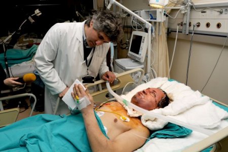 Fofoğrafta Prof. Dr. Ömer Özkan'ın, Uğur Acar'ı tedavi ettiği görülüyor. Uğur Acar'ın yeni yüzünün de görüldüğü fotoğrafta, baş parmağıyla 'tamam' işareti yaptığı da yer alıyor. CİHAN