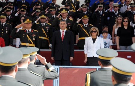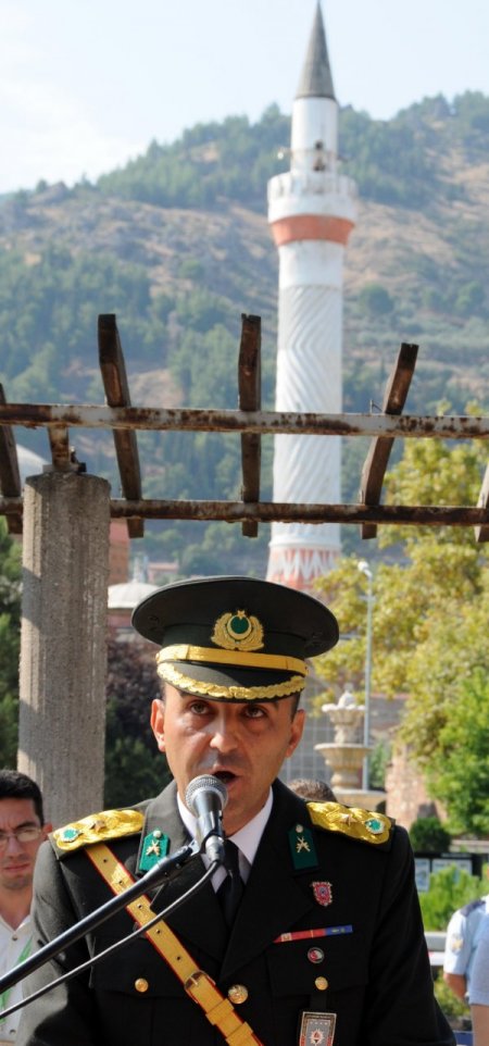 Hükümet Konağı önünde düzenlenen törende Vali Celalettin Güvenç, 1. Piyade Eğitim Tugay Komutanı Tuğgeneral Nehir Aydın ve Belediye Başkan Yardımcısı Nursel Ustamehmetoğlu törenleri izlemeye gelen vatandaşların bayramını kutladı.