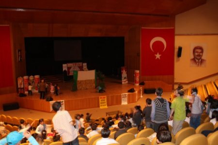 Bilimsel toplantılara ve kongrelere ev sahipliği yapan Erzurum Atatürk Üniversitesi Kültür Merkezi Büyük Salonu’nda bu kez çocuk çığlıkları vardı. Türkiye genelinde birçok etkinliğe imza atan Zambak Yayınları Kukla Çocuk Tiyatrosu, Ağrı ve Kars illerinin ardından bugün üniversitenin konferans salonunda Erzurumlu çocuklar için sahne aldı. ‘Benekli’ isimli tiyatro oyununu izleyen çocuklar uzun süre eğlendi. Oyuna karşılıklı şakalarla ve esprilerle müdahil olan çocukların hayli neşeli oldukları gözlendi. Tiyatro oyunu sırasında eğlenen miniklere bir yandan da erken uyumanın önemi gibi bilgiler aktarıldı. Özellikle okul öncesi eğitimi alan çocuklar etkinlik öncesinde çalınan şarkılarla dans etmeyi ihmal etmedi.