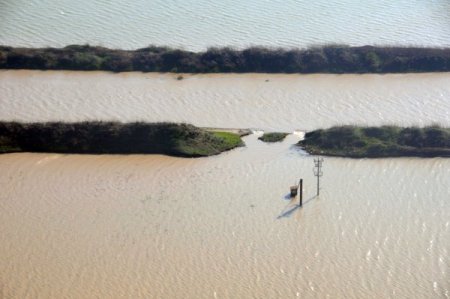 Sağanak yağış ve Suriye’nin baraj kapaklarını açması sebebiyle sular altında kalan binlerce dekar tarım arazisi havadan görüntülendi.