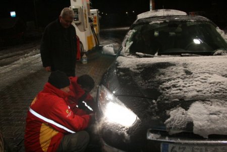 Bu arada bazı otomobil sürücüleri ise yollarda kalmamak için en yakın benzin istasyonuna giderek yardım istedi. Benzin istasyonu çalışanları, zincir takmayı bilmeyen sürücülere yardımcı oldu.