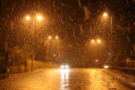 Zonguldak’ta akşam saatlerinde bastıran kar yağışı, sokak lambalarının altında seyirlik manzara oluşturdu. Kar yağışına hazırlıksız yakalanan araç sürücüleri ise yollarda mahsur kaldı.