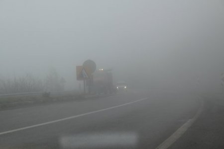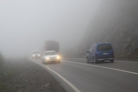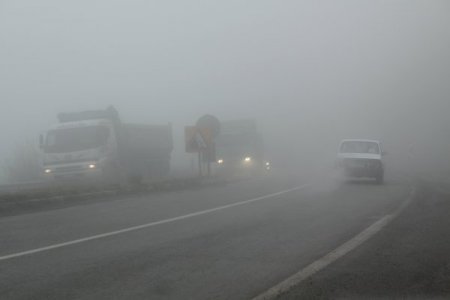 Zonguldak-Ereğli kara yolu üzerinde 2-3 metreye kadar düşen görüş mesafesinde araçlar güçlükle seyrediyor.