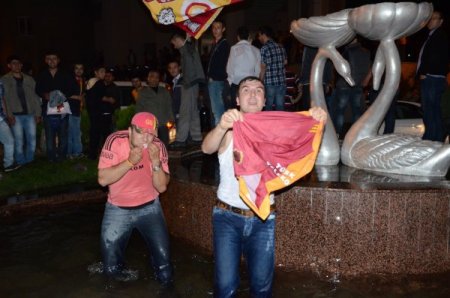 Diğer yandan, kendilerini şampiyonluk sevincine kaptıran 2 genç taraftar, caddenin ortasındaki Kuğulu Havuz’a girerek, sevinç gösterisinde bulundu. Gençler, havuzda birbirlerini ve diğer taraftarları ıslatarak eğlendi. Taraftarların kendilerini havuza bırakması ilginç görüntülere sahne oldu.