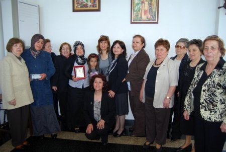 Etkinlikte, Zonguldak Valisi Erdal Ata'nın eşi Nazan Ata, Hayriye Düzcük'e plaket, Saime Toptan ise cumhuriyet altını verdi.